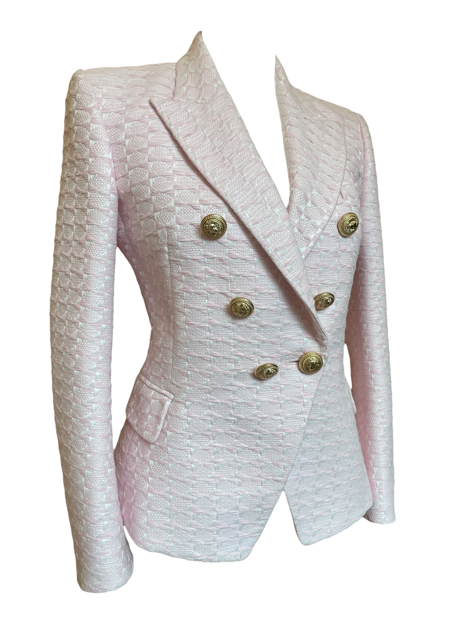 Balmain Pink jacket with gold buttons