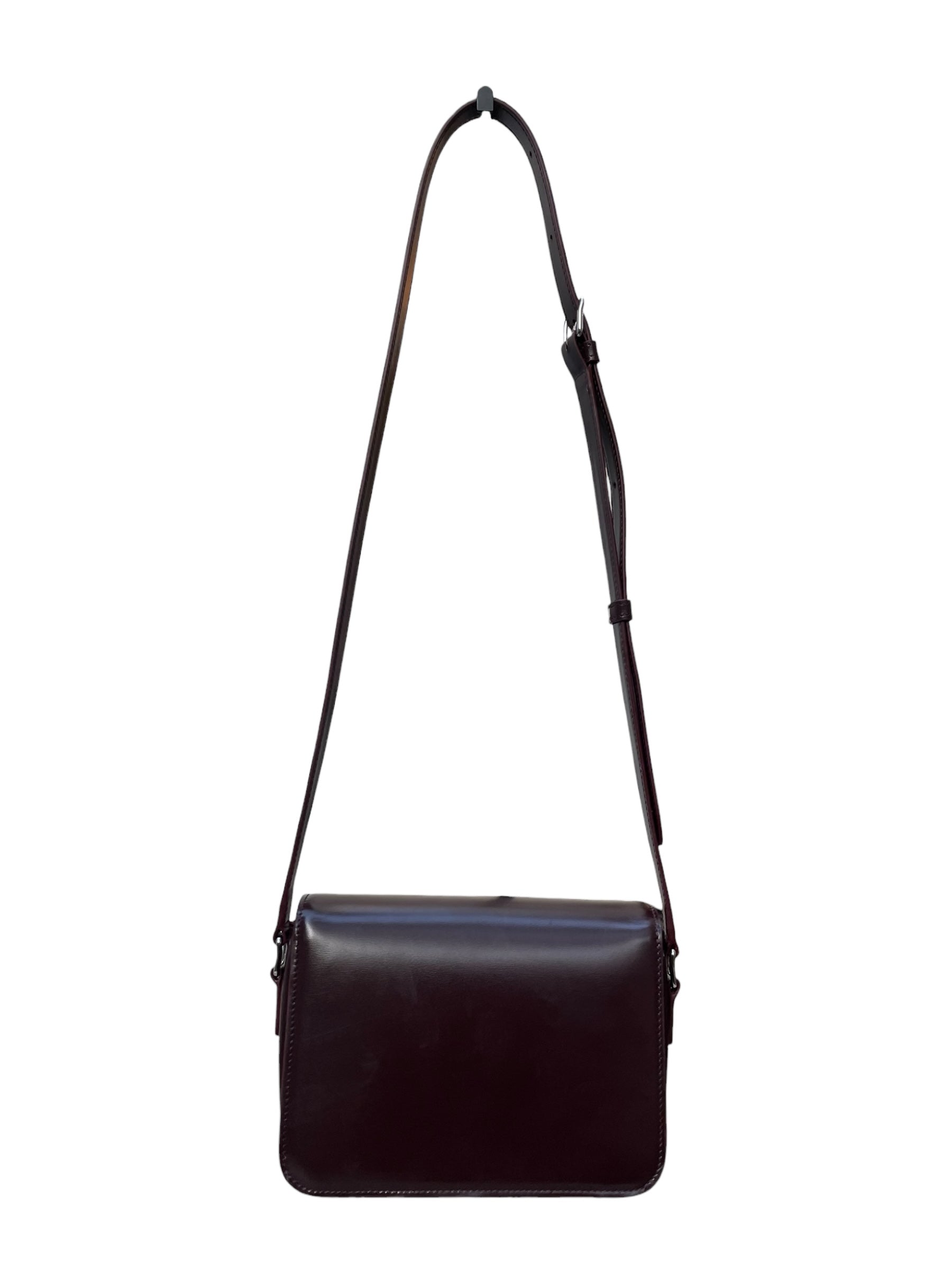 A refined and timeless piece from Celine, this Triomphe Teen bag comes in a deep dark burgundy shade, crafted with the house’s signature minimalist elegance. Featuring silver-tone Triomphe hardware, it offers a sophisticated, modern silhouette perfect for both daily wear and elevated outfits. In very good overall condition, with a few light, barely visible signs of wear. Sold with its original dust bag.