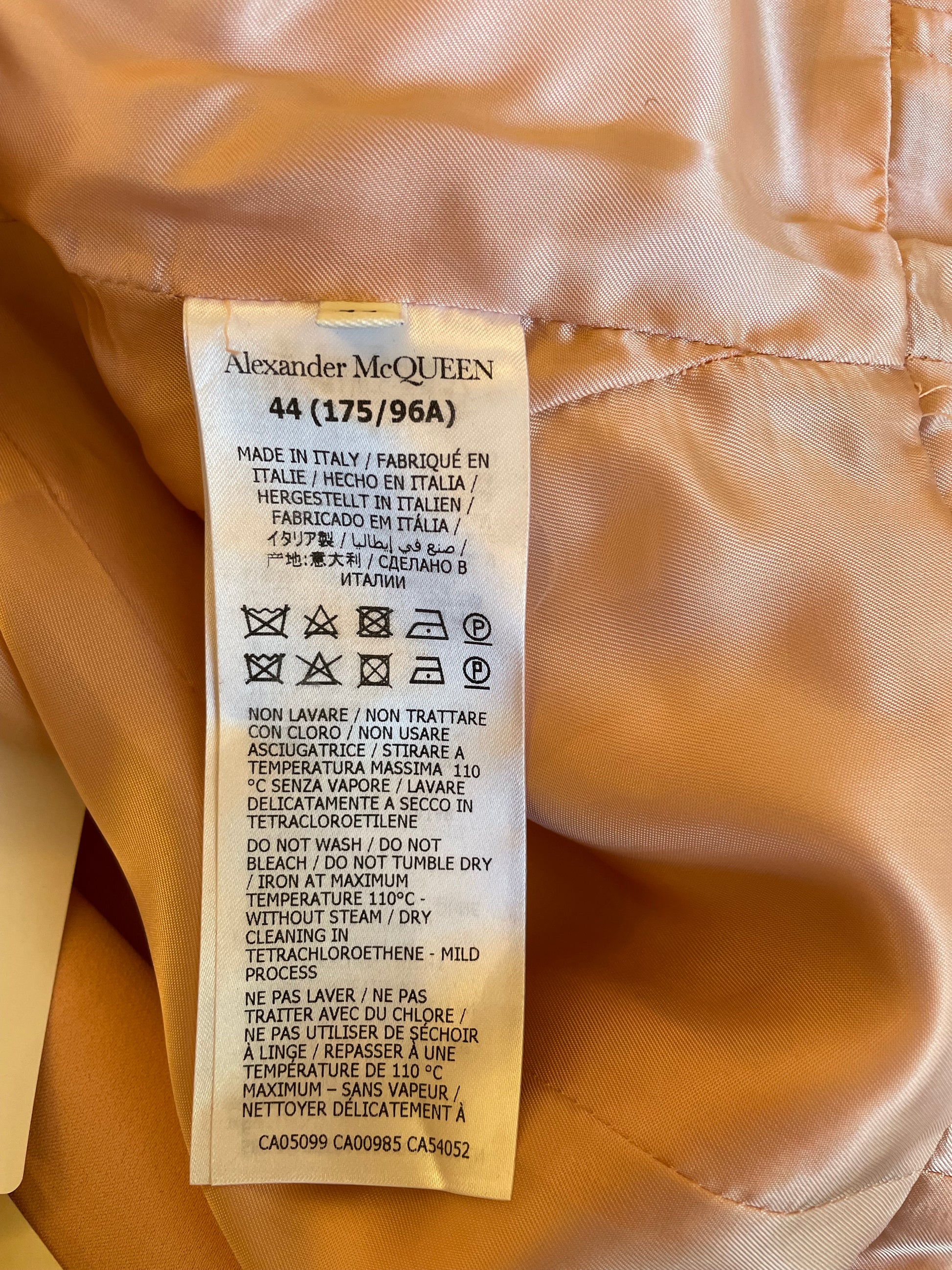 Alexander McQueen tailored jacket in very good overall condition. Structured cut with defined shoulders and a slightly fitted waist. The soft pink color keeps the look clean and refined. A versatile piece suitable for both everyday wear and more formal looks.