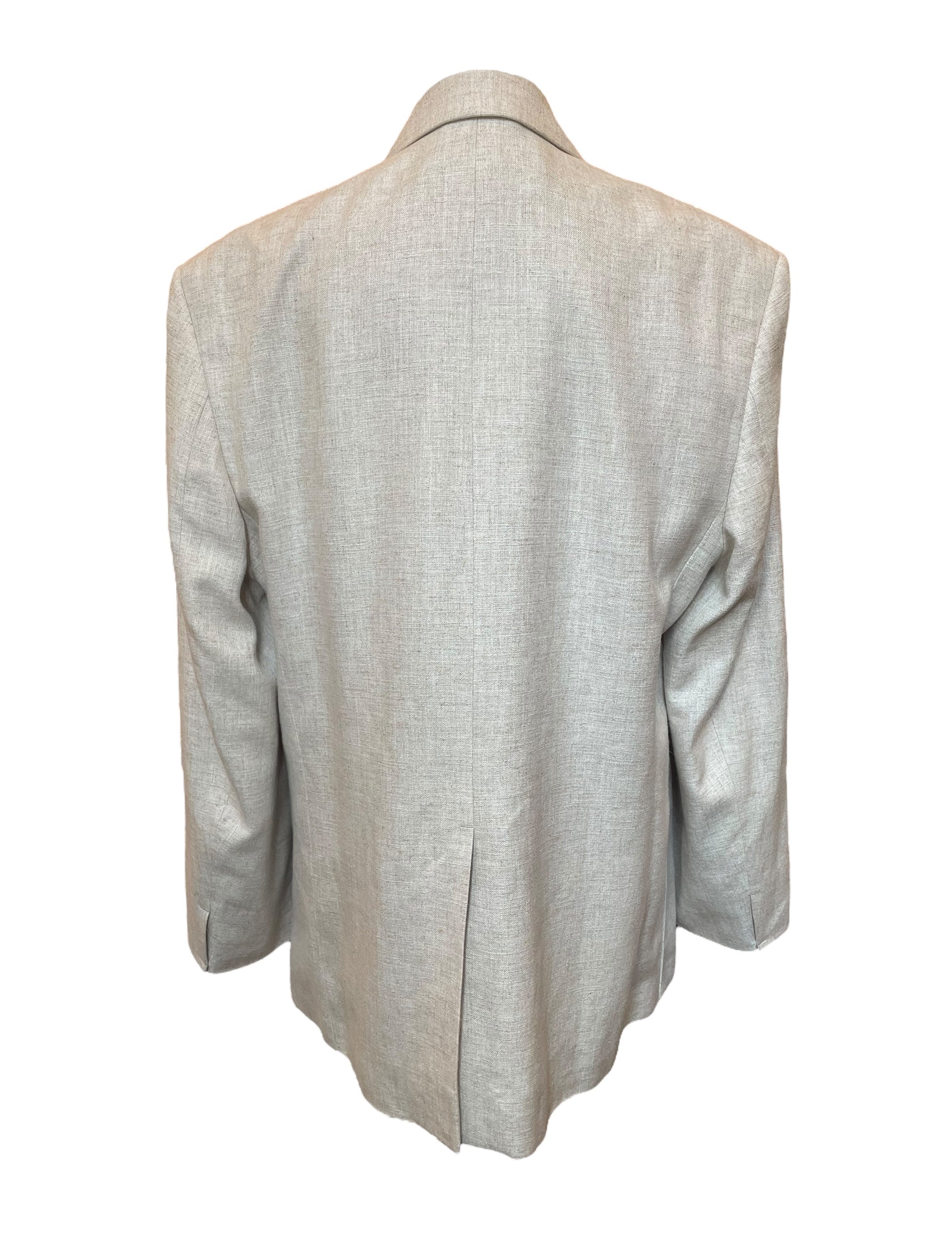 Crafted from a refined viscose and linen blend in a warm beige–ecru hue, it features clean tailoring and sculptural lines that define the silhouette — a signature of the house.